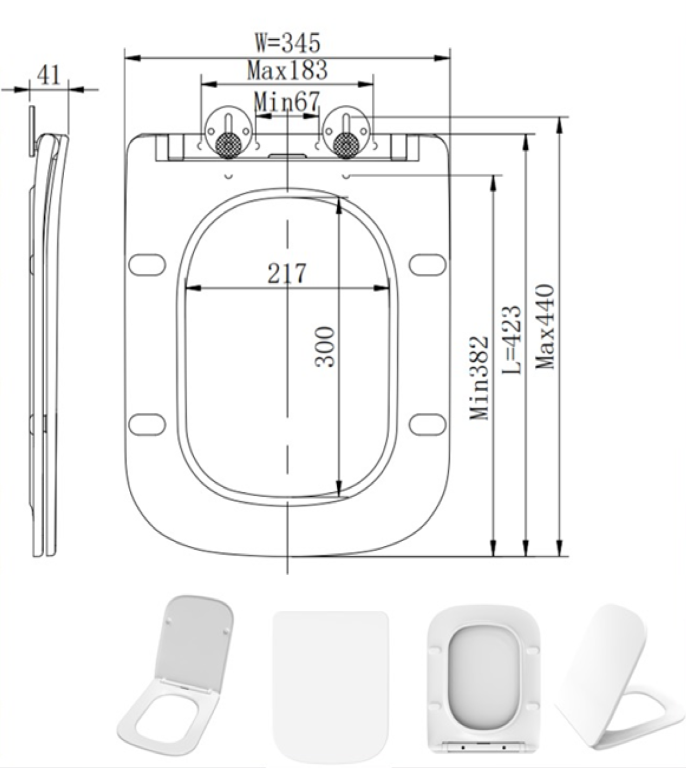 - 380mm (L) x 60mm (W) x 450mm (H)
