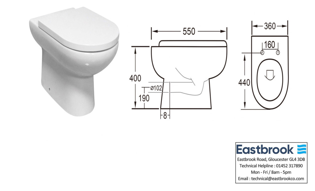 Dura Comfort Height Back To Wall Close-Coupled Eco Vortex Pan only - White (Cistern &...