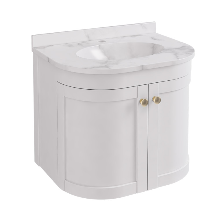 The Hardwick bathroom furniture with the traditionally inspired curved lines and door panels of the vanity unit.