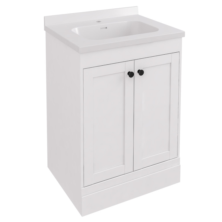 Hardwick 600 mm Quartz Square Basin only 1 Tap Hole - White (Vanity unit & Tap Sold...