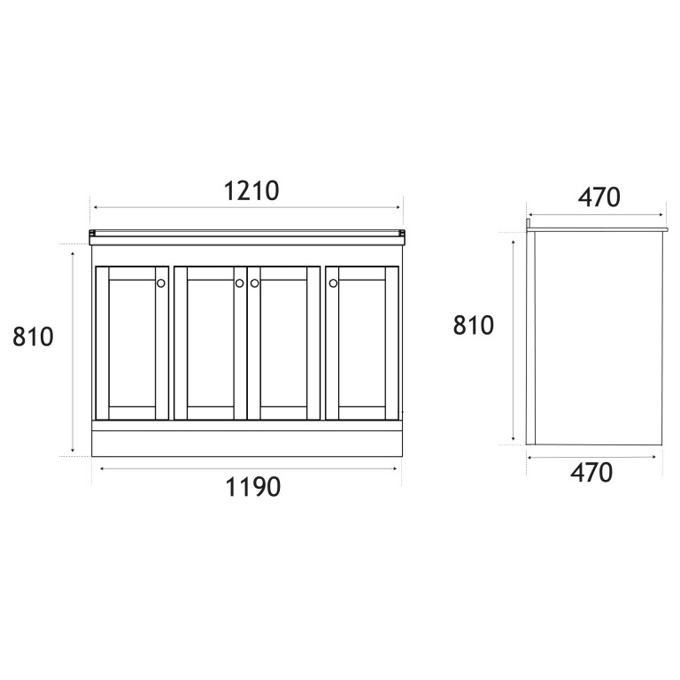 - 470mm (L) x 1190mm (W) x 810mm (H)