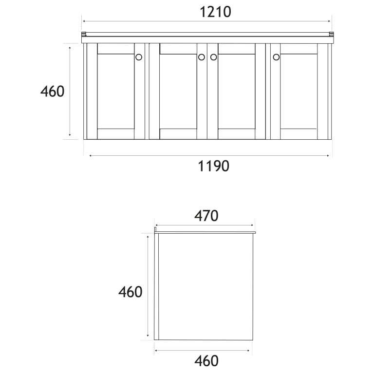 - 460mm (L) x 1190mm (W) x 460mm (H)