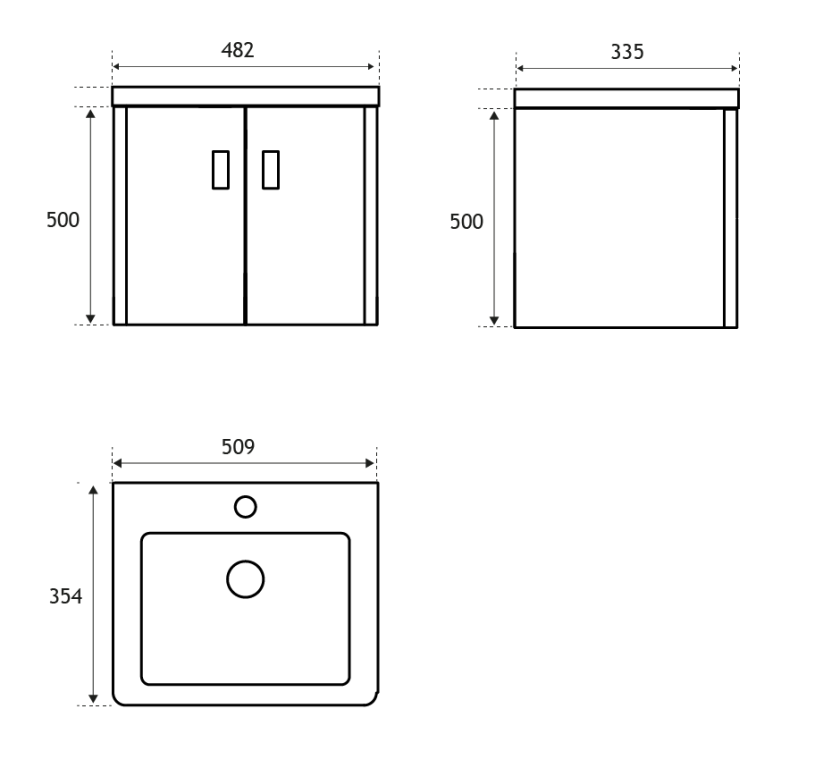 - 335mm (L) x 482mm (W) x 500mm (H)
