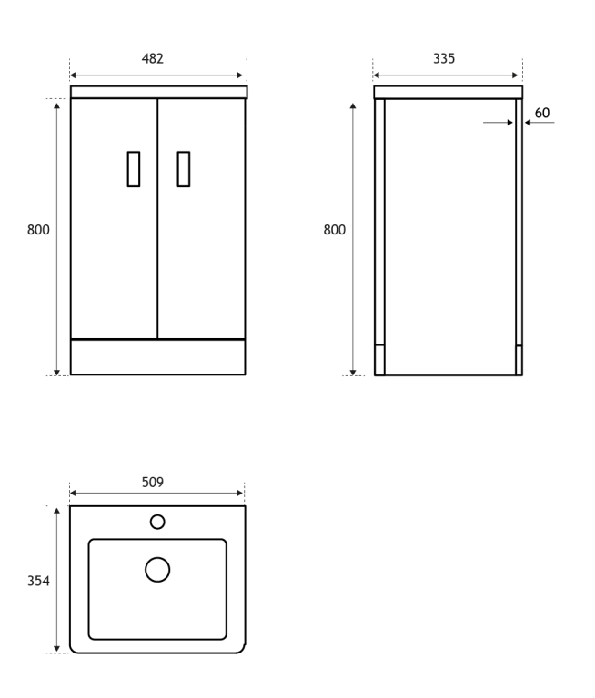- 335mm (L) x 482mm (W) x 800mm (H)