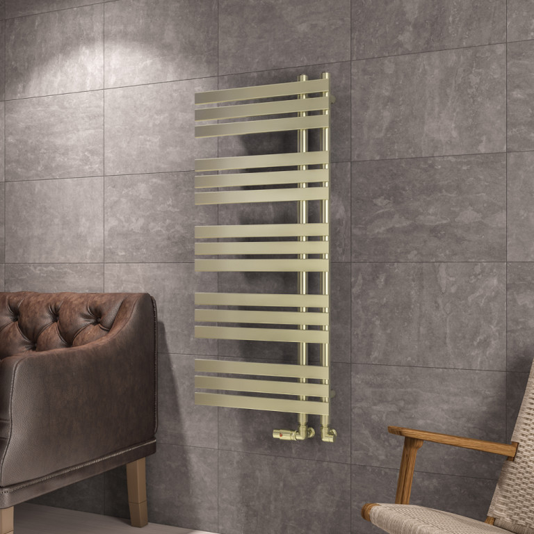 Staverton Tube on Tube 1200 x 500 Towel rail - Brushed Brass