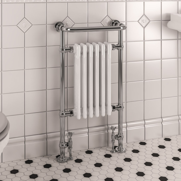 Avon 960 x 500 Towel rail - Brushed Brass/Gloss White