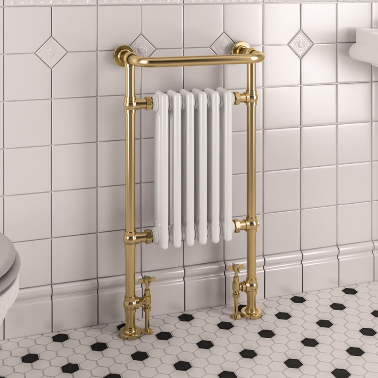 Avon 960 x 500 Towel rail - Brushed Brass/Gloss White