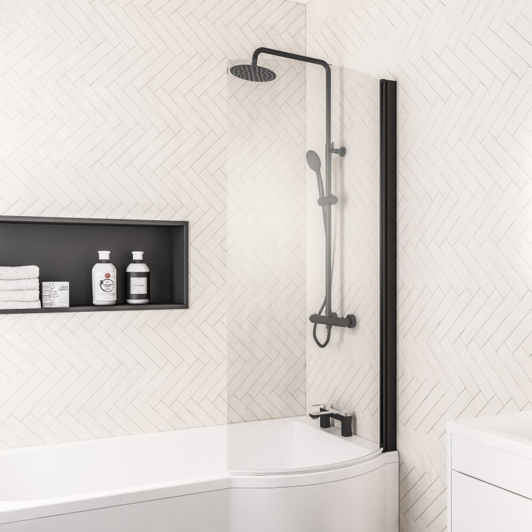 P Shape Bath Screen Right Handed - Matt Black