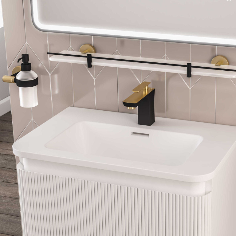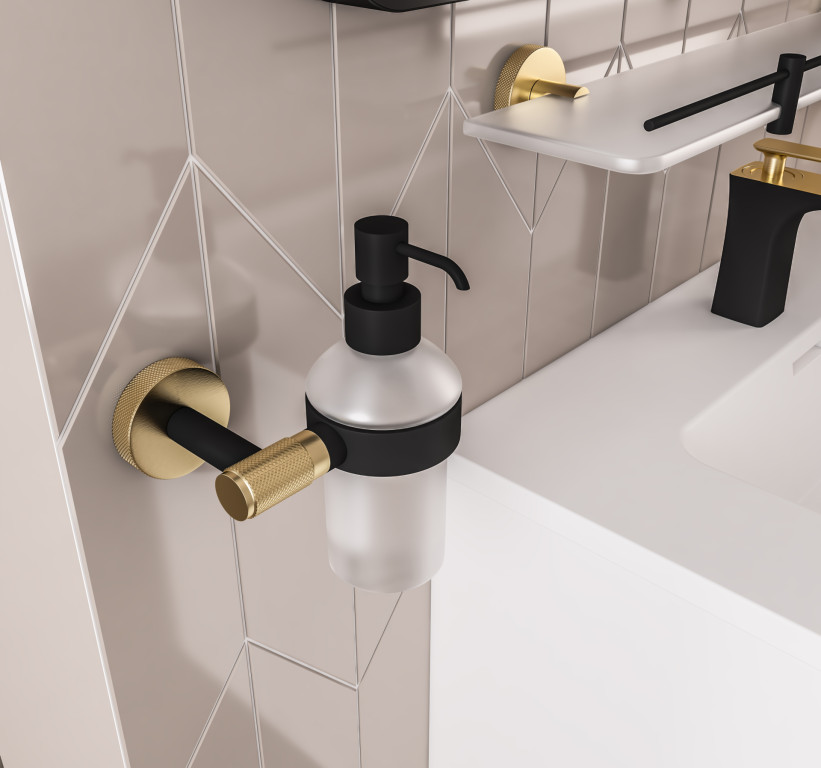 Catania Toilet Roll Holder with Shelf - Matt Black/Brushed Brass
