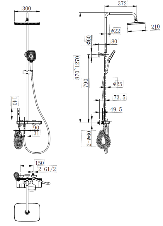 Exposed Thermostatic Shelf Shower set - Brushed Brass