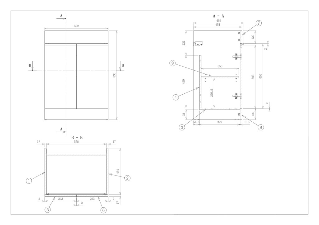 - 469mm (L) x 592mm (W) x 830mm (H)