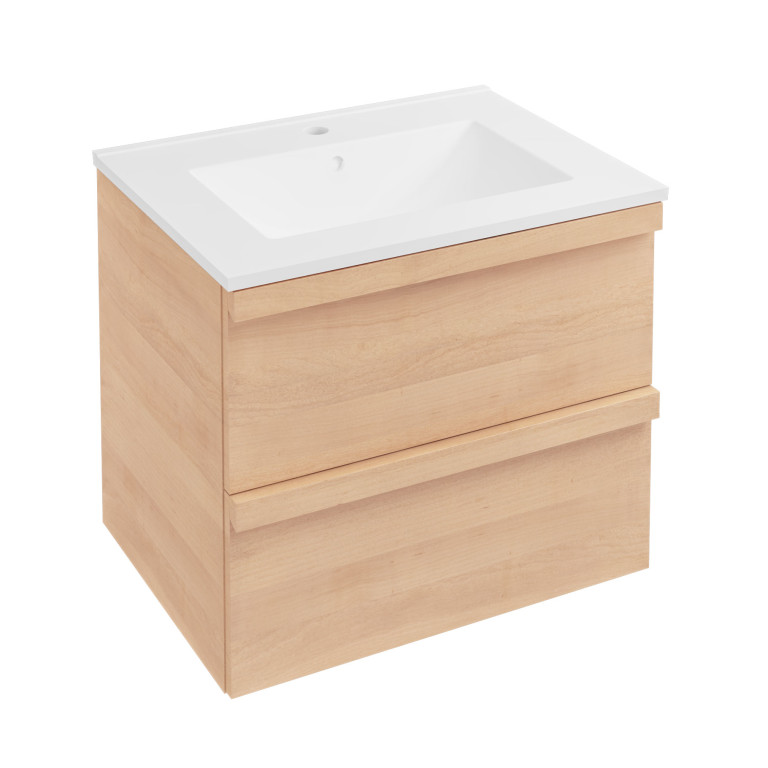 Ravensbourne 600 Wall Hung Drawer Unit only - Natural Oak (Basin & Tap Sold Separately)