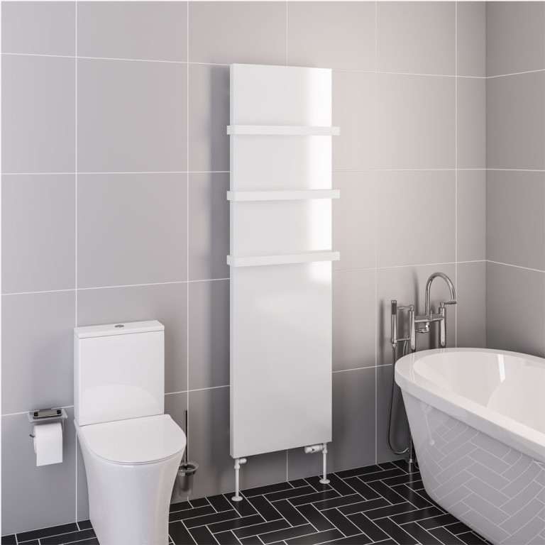 Download (0.72 MB)No more heavy and bulky panel radiators. A minimalist cover has been added to the Wingrave towel rail with built in middle connection option