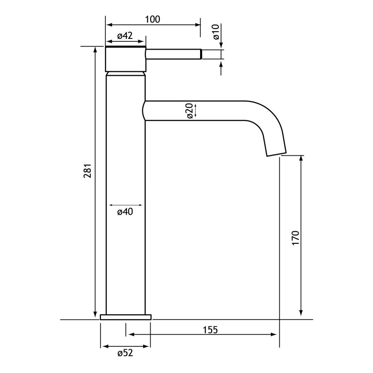 - 185mm (L) x 52mm (W) x 281mm (H)