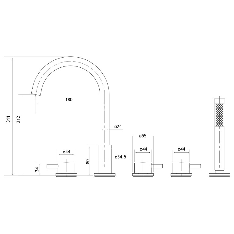 Meriden Five hole Deck Mounted bath Shower Mixer - Matt Black