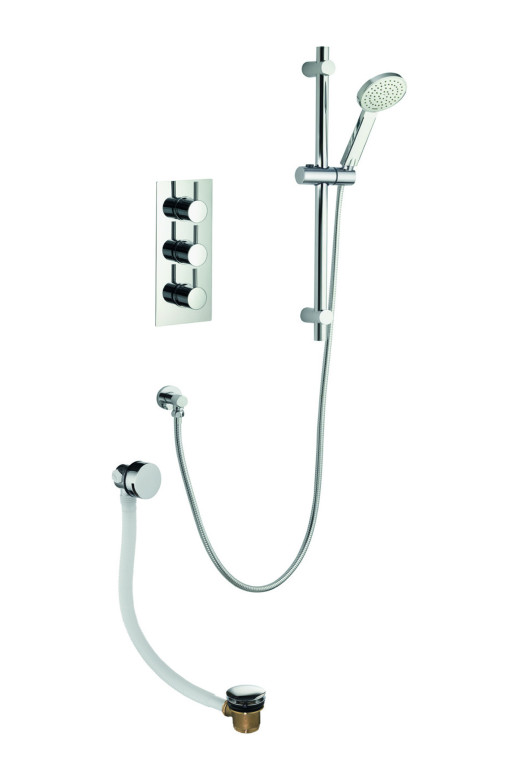 Arco 3 knob twin outlet concealed valve with New Adjustable head (KI465) and bath overflow filler
